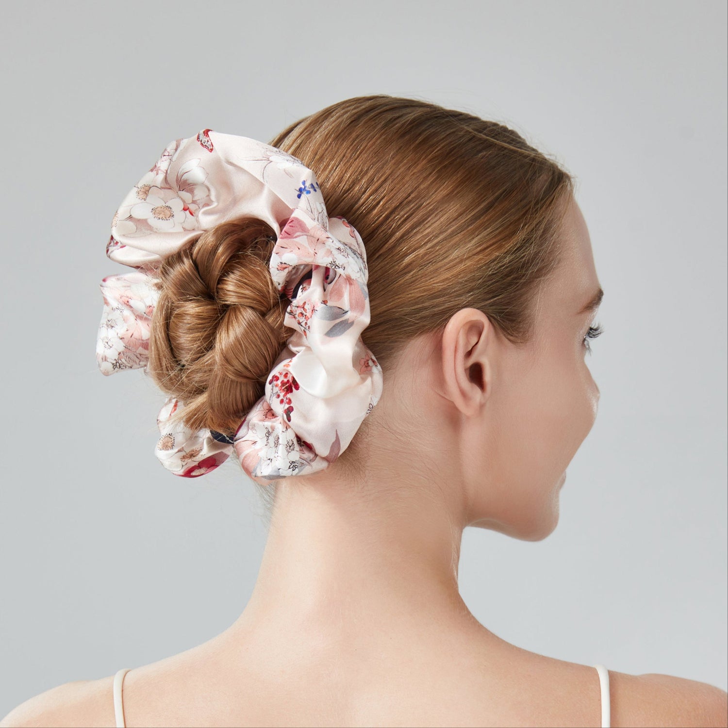 Elevate your haircare routine with our collection of silk scrunchies — gentle...