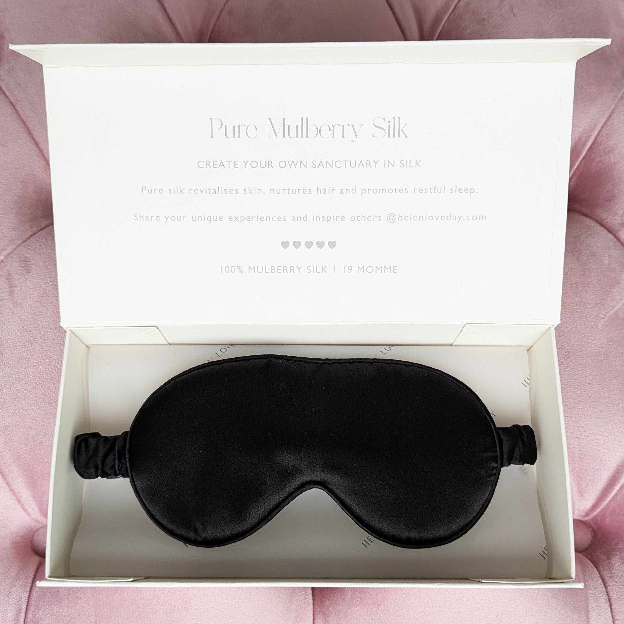 Get your beauty sleep with this delicate black luxury silk eye mask, presented in a gift box, why not complete the set with a matching hair scrunchie?