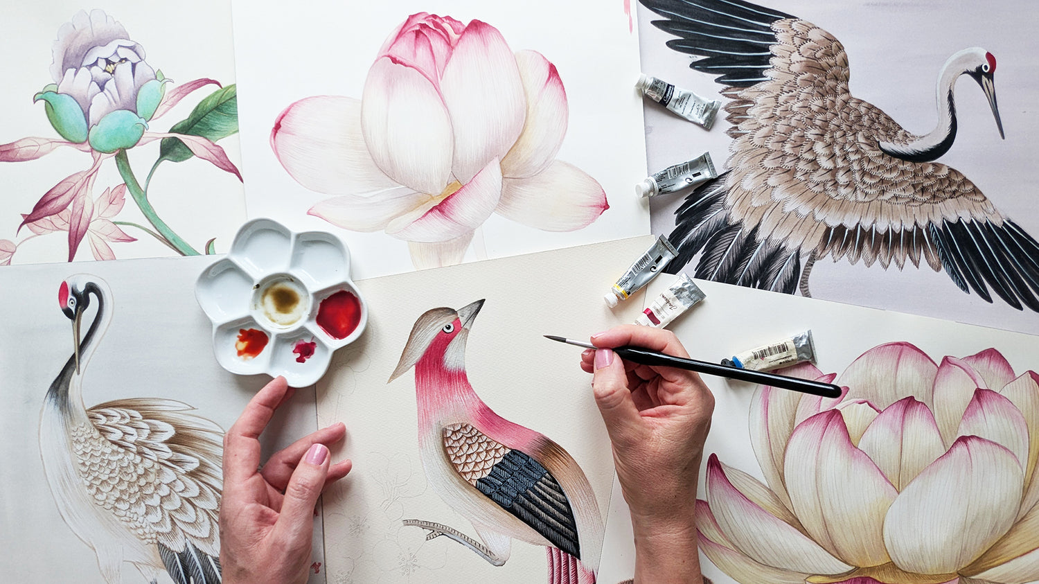 I have a vivid memory of the white porcelain vase she helped me paint, the detail of the indigo blue design I drew, and the feeling of accomplishment I had when we pulled it from the kiln. The mindful process of art and the feelings it evokes have stayed with me while I've honed my skills as an illustrator and designer. As a result, my collections are reminiscent of days gone by, a romantic reflection of the past where vintage glamour meets whimsical elegance.'