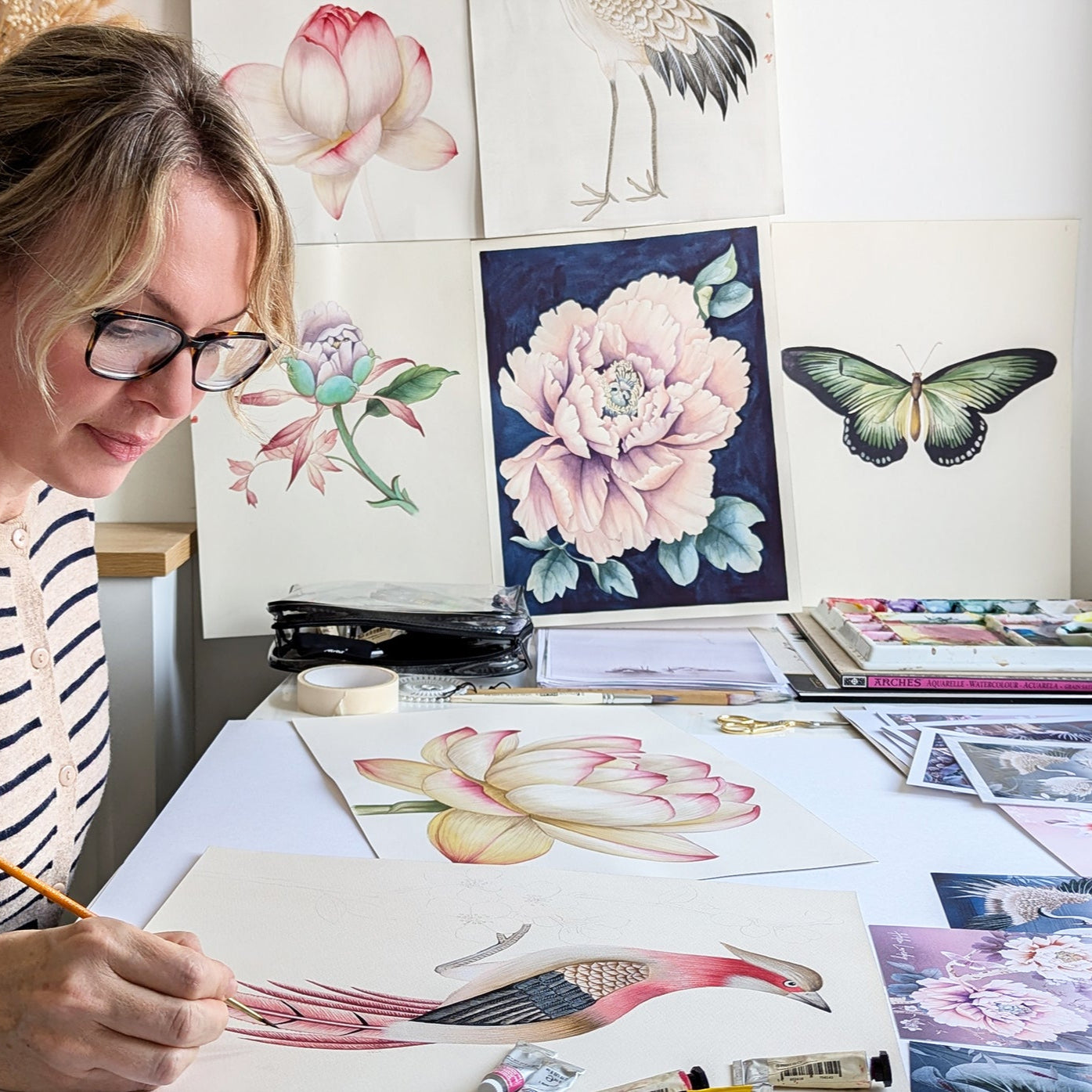 Each Helen Loveday design begins as a painting — inspired by vintage botanicals, soft romance, and the natural world. Every brushstroke is translated onto silk using fine digital printing that captures the softness and soul of the original artwork.